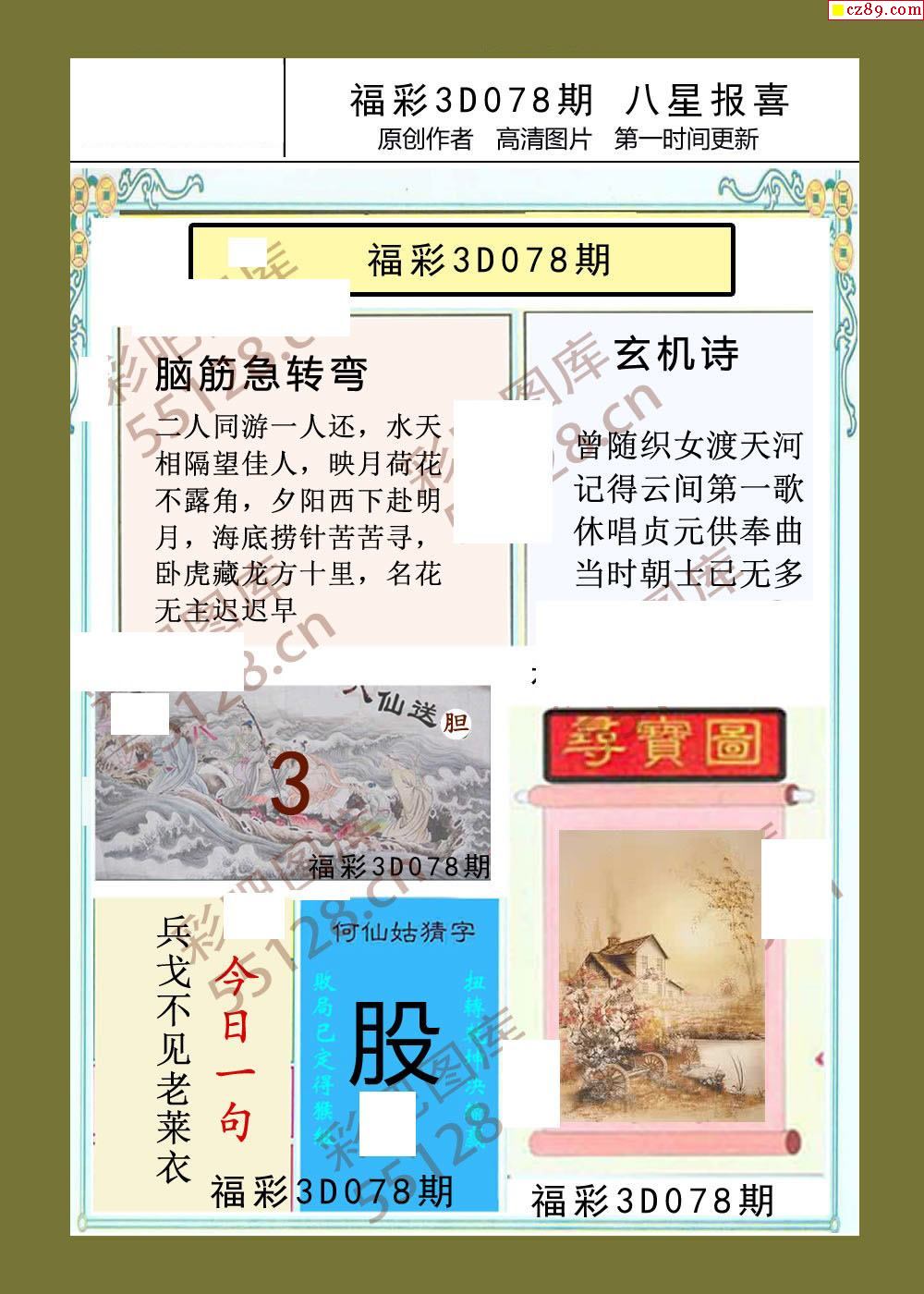 八星报喜26年078期福彩3d画谜