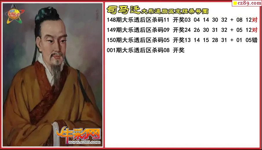 大乐透001期司马迁后区定胆杀号图